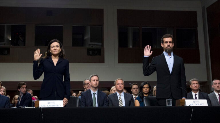 Sandberg, 49, has extensive Washington experience, typically acts as her company’s public face and clearly felt comfortable answering senators’ questions. The bearded and tieless Dorsey, 41, is far less of a public figure and was quiet and respectful in his answers, even acknowledging at one point that he is “typically pretty shy.”