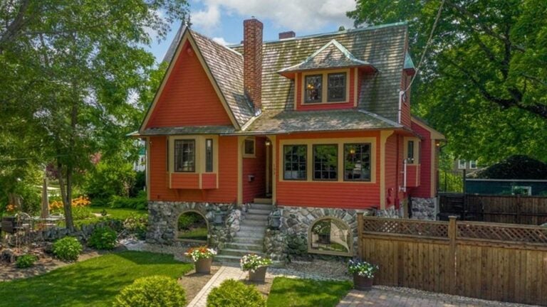 With its sharply gabled roof, bold colors, and windowed keystone arch foundation, this Melrose single-family seems fit for a cast of fantastical characters.