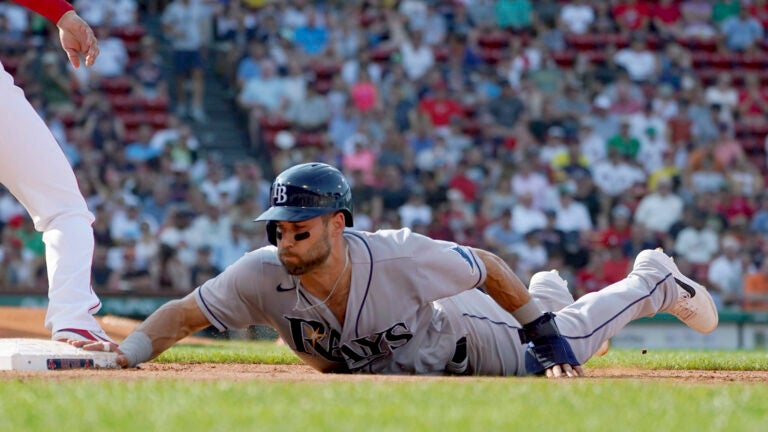 The Red Sox had just two hits — an RBI double by Rafael Devers in the fourth inning plated Boston’s only run and a single in the fifth inning by Kevin Plawecki was the last hit by the Red Sox against the Rays, who got five shutout innings from four relievers after Rasmussen left.